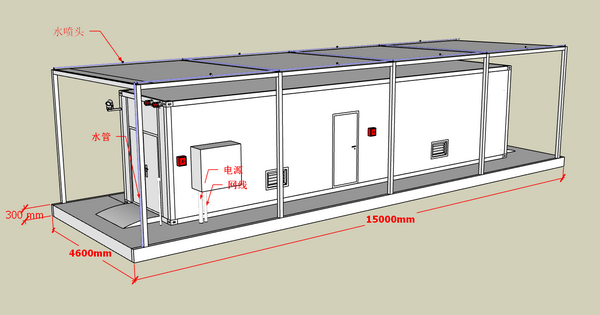 1、安裝基礎(chǔ):箱體尺寸為12190*2350*2600mm,承載地基使用≧C25混凝土結(jié)構(gòu),尺寸為15000*4600*300mm,預(yù)留水、網(wǎng)線、主電源管道。